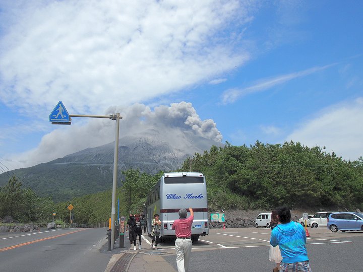 屋久杉工芸品の見物を後にしますと、鹿児島市街地に戻って来まして、いよいよ桜島の噴火見物です(^.-)☆