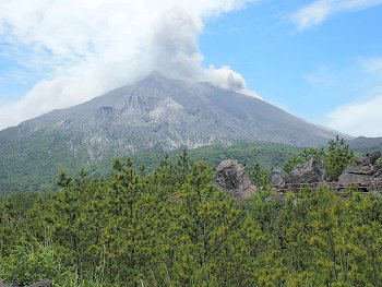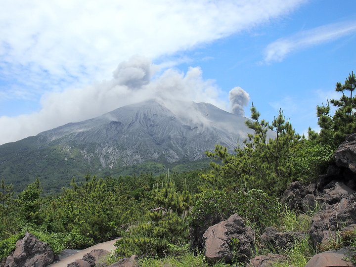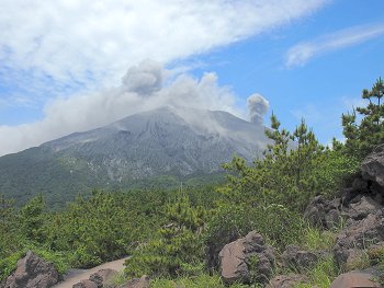 国際火山学及び地球内部化学協会が指定する特定16火山のひとつである。◆地理桜島の大部分を構成する御岳は南北に並ぶ北岳、中岳、南岳から成り、山腹に多くの側火山を配する。山裾が海まで伸びているため平地はほとんどないが、北西部と南西部の海岸沿いに比較的なだらかな斜面があり、農地として利用されている。温暖湿潤な気候でありながら、山肌に木々が乏しい上に、火山噴出物からなる土壌のため保水性が低く、川はほとんどが涸れ川となっている。