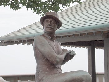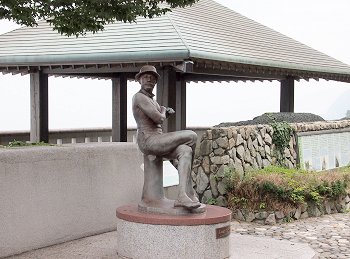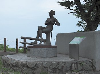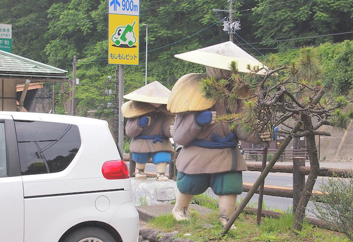上にと戻って来ますと、駐車場の片隅に100年前くらいの旅人のオブジェが(^.-)☆