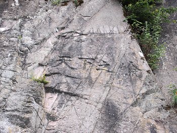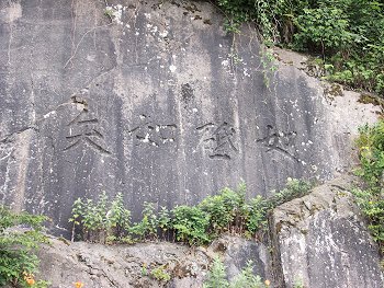 旧国道の絶壁に「如砥如矢」という、1メートル四角の大文字が刻まれている。