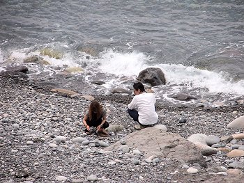 このお二人を後方から何枚かパチリ。そして、海岸の景観も(^_^)v