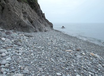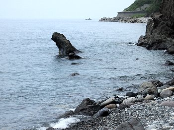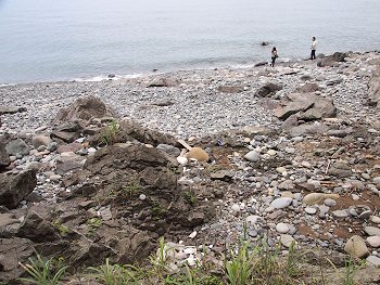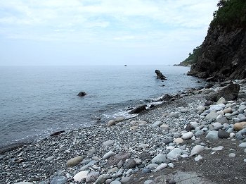 日本海の荒波と、険しい波打ち際の歩行は、容易に大変だったものと推察されてしまいます。