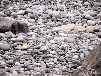 激しい日本海の荒波にもまれて海岸の石は凡て丸っこくキレイ。