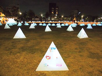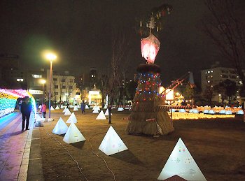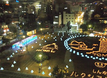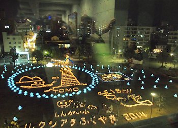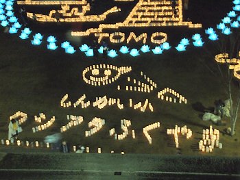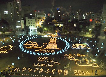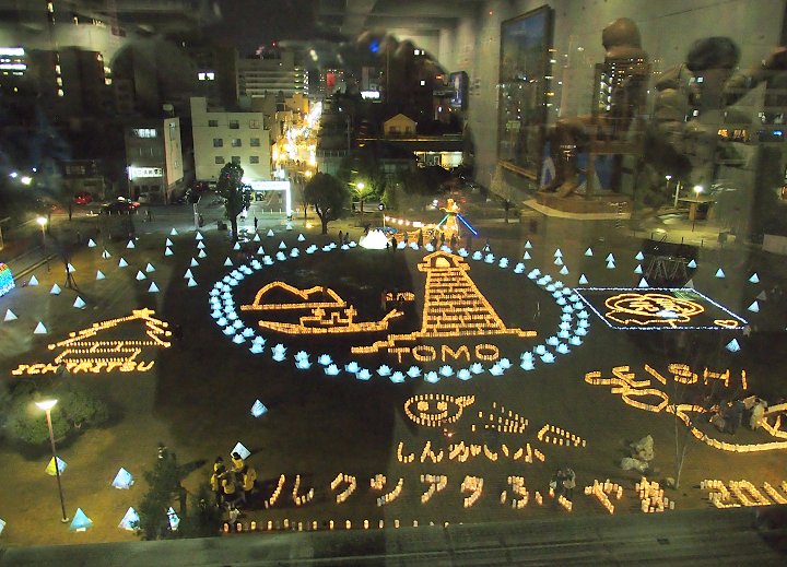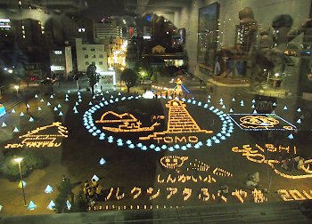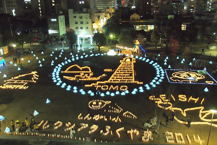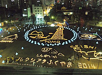 中央公園広場には、多数のキャンドルで表現されました地上絵…と言った方が良いのでしょうか…鞆の浦の常夜灯を表現したものもありまして大変キレイ。