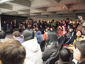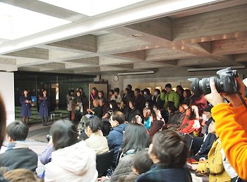 学びの館「ローズコム」の建物に眼を向けますと、大勢の方々が3階から見下ろしておられます。
