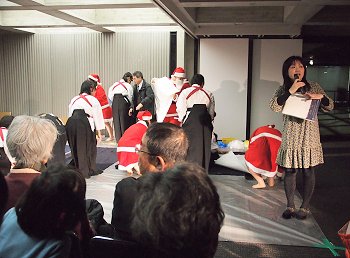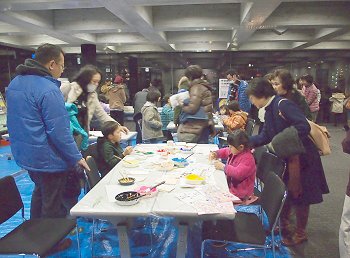 キャンドルで表現されました地上絵を楽しみました後で、今度は3階で行われています書道パフォーマンスを拝見です(^.-)☆