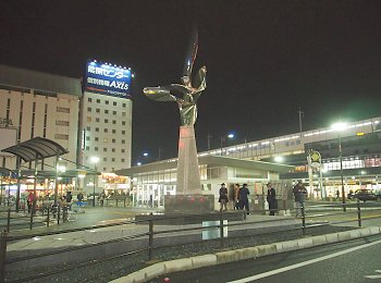 福山駅南口にヤッて来ますと、まず眼に入りますのが「五浦釣人(いづらちょうじん)像」。