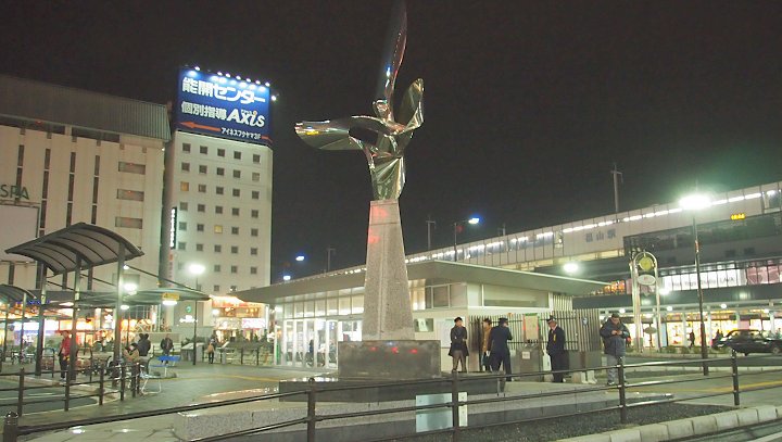 駅南口のバスターミナル横を足早に通過していますと、野田正明さんの作品が…