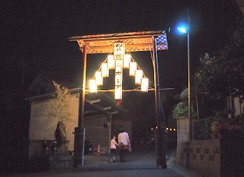 上の女の子は昨年も出かけておりますけど、下の男の子は今回が初めての八幡神社行き。八幡神社までの夜の参道をベビーカーに乗って。