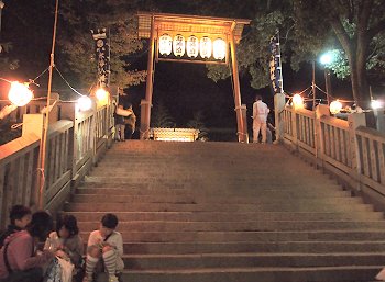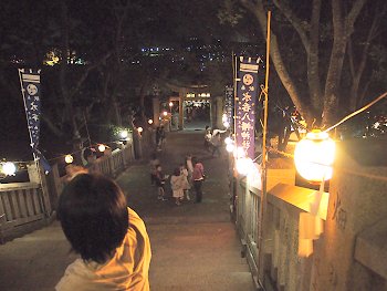 石段を、ベビーカーを持ち上げて上がりますのも億劫ですから、廻り道となりますけど脇道から境内へ。それでは、また画像で前夜祭の様子を少しご案内致します(^-^)//"