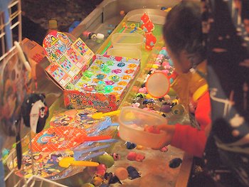 下の男の子は嫁さんに任せまして、請われるまま一緒に露店にと直行です。まず向かった先は、「かわいい すくい屋さん」。