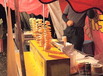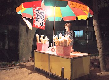 金魚すくいよりは易しいのかも…ミッキーばかり選んで楽しそうに5〜6個すくっておりました(^.-)☆これを終えますと次は食べ物。