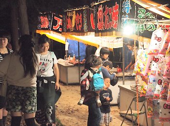 アッチをキョロキョロ、コッチをキョロキョロ(^-^)立ち止まりますと足をばたつかせまして「早く行こう!!」と催促(^-^)八幡神社に到着しますと、やはりお祭りですから露店の廻りは子供達で賑やか(^_^)v