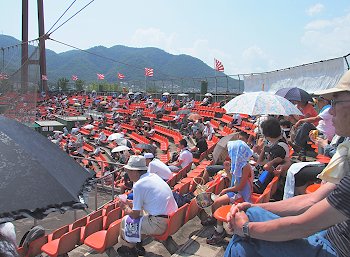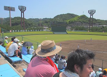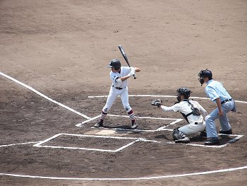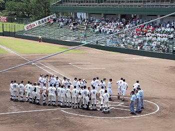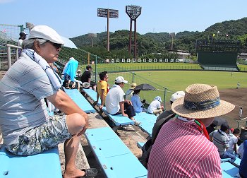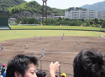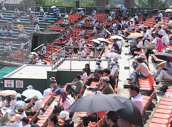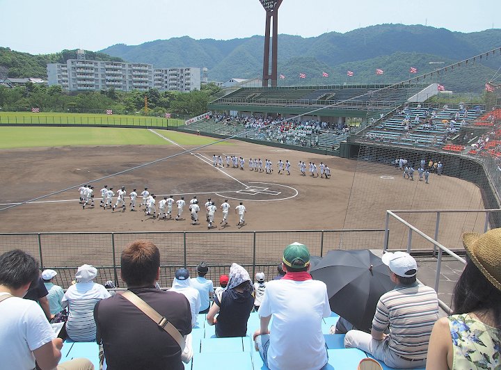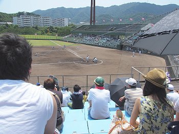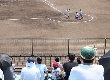 さすがに広商の試合ですから第一試合よりも随分観客が増えて来ました(^.-)☆ 勿論、GONsanはどちらのチームの応援でもありませんで、高校野球を楽しみます観客の一員と言ったところでしたが(^_^)vそれはともかく、P.M.0:53にプレイ開始となりました。