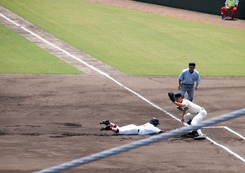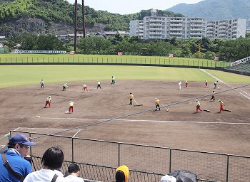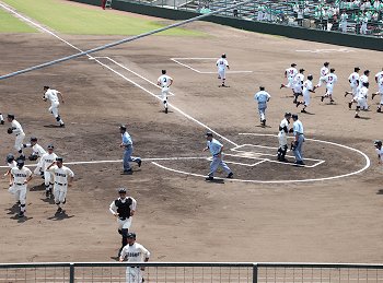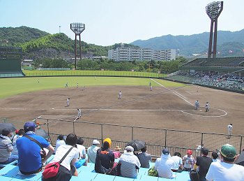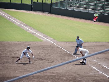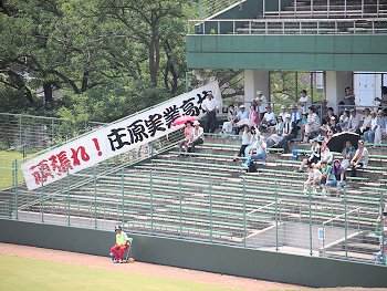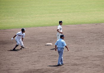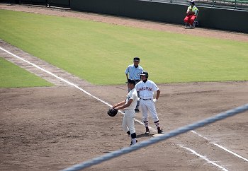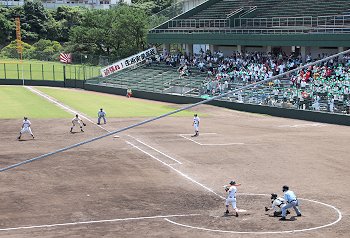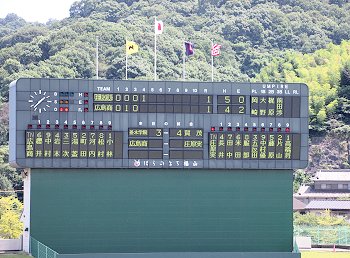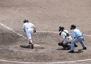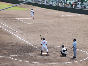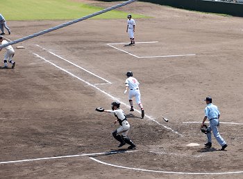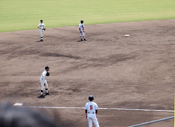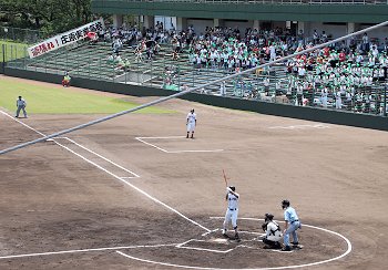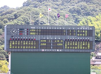 意外にも…と言いましたら庄原実業関係者の方々に叱られますけど、序盤は庄原実業が押し気味の展開。2回裏に広商の1点先取とはなりましたが、4回表に逆転の庄原実業。そして、その裏に同点としました広島商業。
