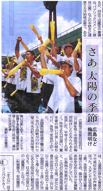 そうでしたネ…この日(7/20)広島気象台から山口県を除く中国地方の梅雨明けを発表したのでしたねぇ〜
