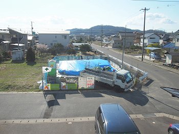 これは、3/21の午後に撮らせて頂きました我が家前の景観です(^.-)☆機材を車から降ろされ足場の組み立てに入られましたけど、実に手慣れておられます。