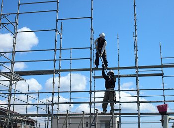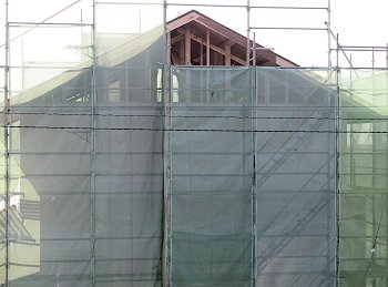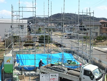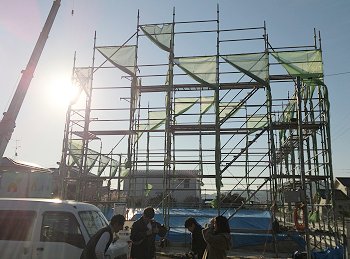 こうして防護ネットで覆われていますから、拝見する事は出来ませんが…施主様・ご家族の方々と顔が合いましたので挨拶程度は交わしましたけど、皆さん楽しそうなお顔でありました。