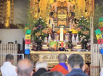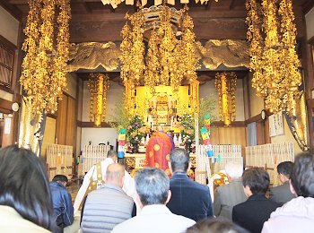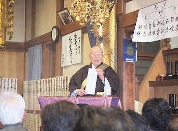 それはともかく、彼岸会でお寺行きとなりました。挿入の画像は、その際の一コマなんです。この日は、既に住職を息子sanに継承しておられます老僧が、久し振りに法話を…