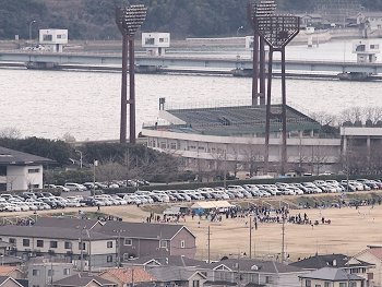 いつものように、この景観を数枚パチリとなりました(^_^)v竹ヶ端運動公園方向に眼を向けますと、沢山の車が駐車です。