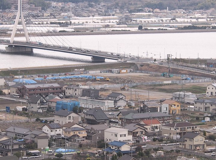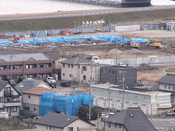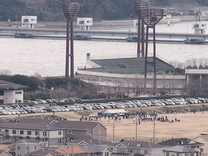 そして、多目的広場ではサッカーの試合なのかも分かりません。何やら開催中。芦田川大橋手前の市の保留地では、若草園建設工事が進行中。