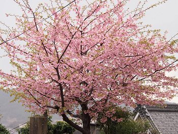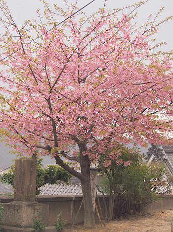 墓参りを終え鐘楼まで下りて来ますと、河津桜が満開と言うか、既に散り始めておりました。