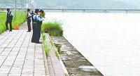 声の方向に視線を向けますと、何やら護岸を捜査中の警察関係者のお二人。