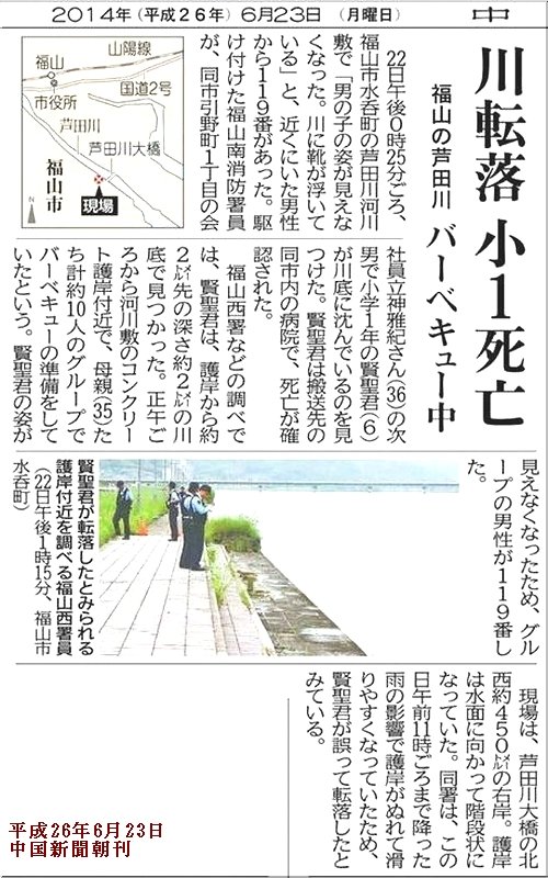 芦田川大橋下では、時たま高齢者の方の似たような事故発生がありますけど、今回のような小学生の事故は記憶にありません。