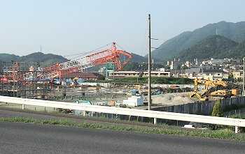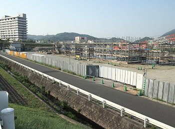 その間に数枚撮りましたのが、挿入の河川敷・若草園工事現場等の画像です。