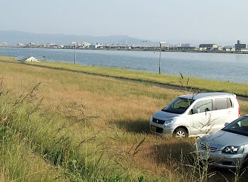 いつもでしたら、竹ヶ端運動公園にと出かけますけど、この日は何故か歩いて芦田川河川敷へ。