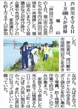 翌朝の中国新聞には、前日の「芦田川一斉清掃」の様子が記事掲載されておりました。