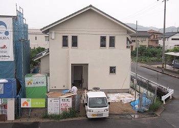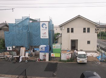 我が家前で建設が進んでいます住宅2棟…右のお宅は6月末に竣工でしたから、室内工事が現在進行形なのでしょうネ(^.-)☆