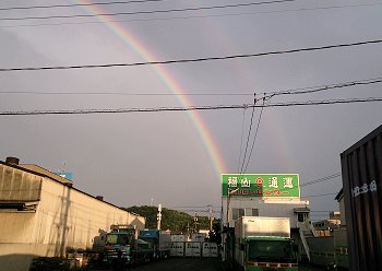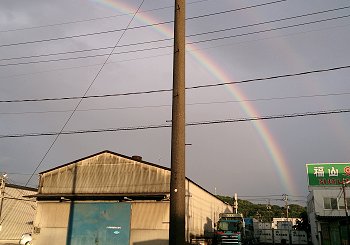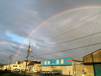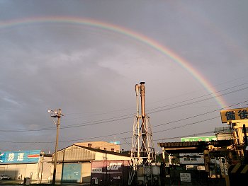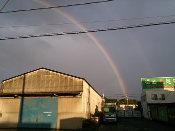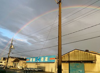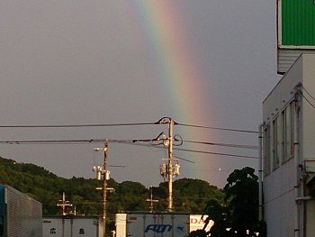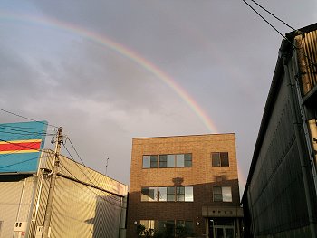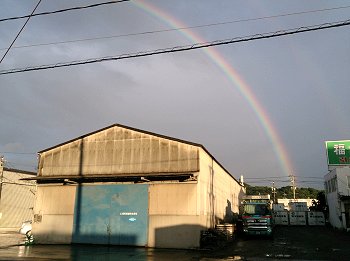 何気なく上空に眼を向けますと、大変大きくてキレイな虹が出ておりました。こんなにデカい虹を眼にしましたのは、今までにありませんでしたかも(^.-)☆