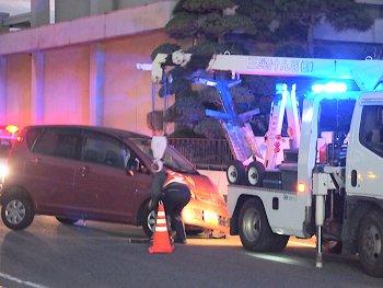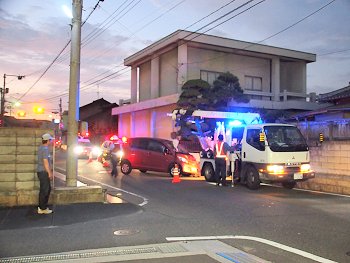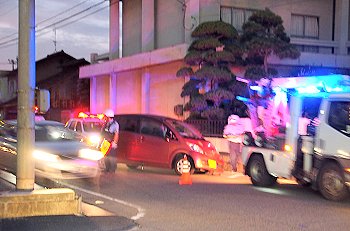 こんな事故現場に消防団の皆様がヤッて来るハズがありませんネ(^-^)今からレッカー車で事故車を牽引となるのでしょうねぇ〜