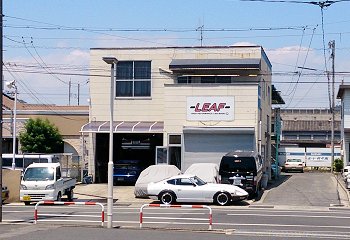 GONsanは、あまり車に関心がありませんから車名は何なのかは分かりません。建物の壁面には「LEAF」の記載が…