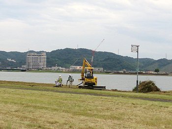 8/15の「あしだ川花火大会」も近付いて来ましたから、例年同様に河川敷の草刈り風景です(^-^)刈り取られた草が、コイル巻きのような形状で河川敷に結構な数で散在しています光景は、もぅ何年も眼にしていますGONsanなんですけど、何度拝見しましても楽しい気持ちになってしまいます(^.-)☆