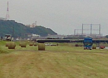 「何が楽しいの!?」…と不思議がられますかも分かりませんけど、雑草で生い茂りました河川敷がキレイに散髪されまして、その整然とした河川敷にポツン、ポツンと雑草のコイル巻き(本当は何と表現しますのか知りませんけど)が散在しますから楽しいのかも(^-^)こんな気持ちを抱きますのは、この河川敷をジョギング・散歩のホームコースとしていますGONsanとゴンchanくらいかも分かりませんねぇ〜