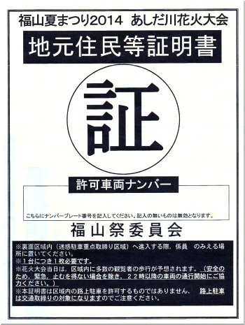 これは、芦田川花火大会当日の車輌通行許可証なんです(^.-)☆
