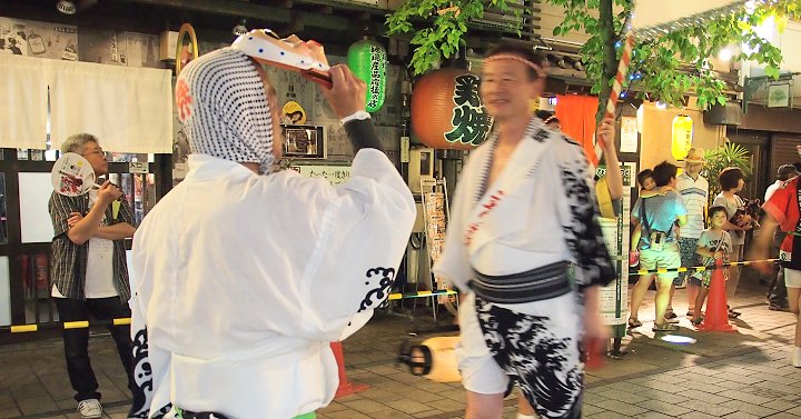 お面を被っての二上り踊りも、さぞ暑いでしょうし汗もかかれるものと思います。