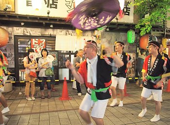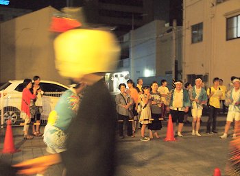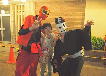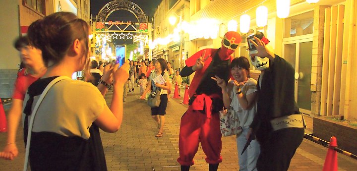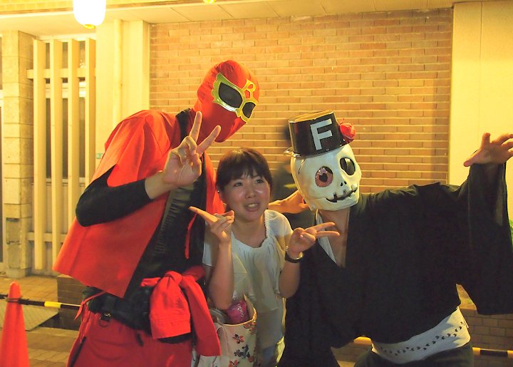 二上り踊りも終わり自販機の前で飲物を求めようとしていますと、GONsanの面前をマスクマンが通過です(^.-)☆