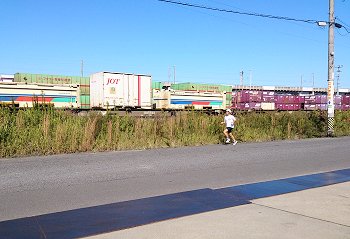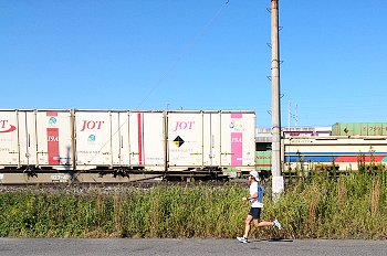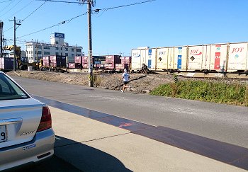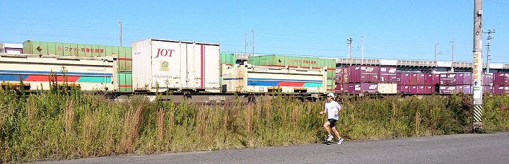 JR東福山駅貨物ヤード脇のこの市道を、大概、昼食時のP.M.0:20前後に通過されますこの方を、GONsanは『昼食時のランナーsan』と呼ばせて貰っています(^.-)☆
