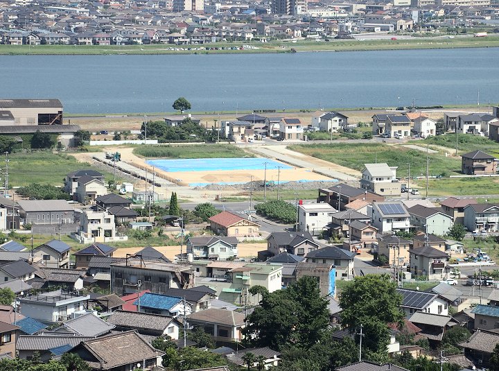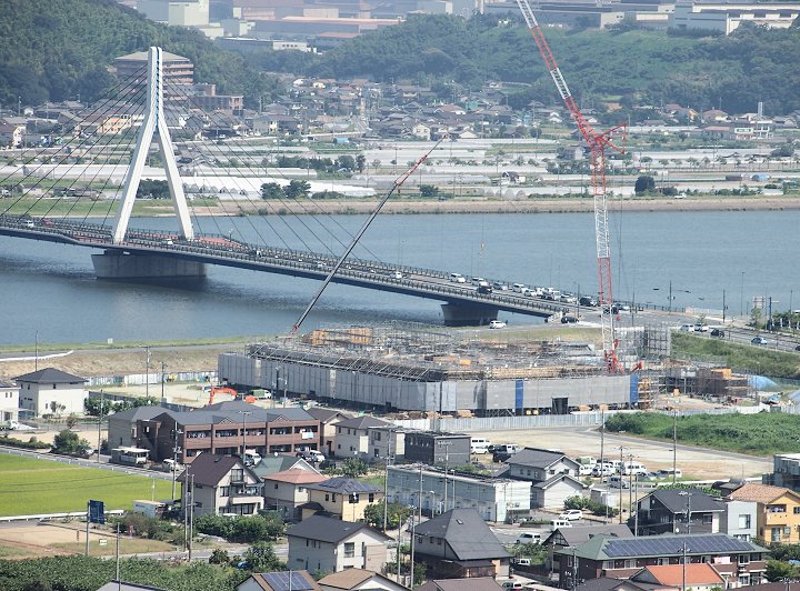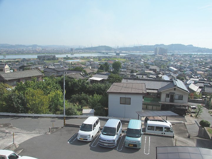 そして、いつものように我が町内を眺望です(^_^)v岡山県南西部の浅口市鴨方町の竹林寺山(標高372m)方向に眼を向けますと、この日はかろうじて天文台が見えましたネ(^.-)☆