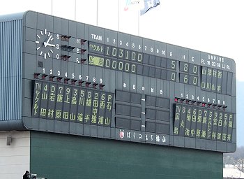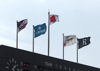 スコアボード上のフラッグのなびき方で、本当に風の強さが分かります。
