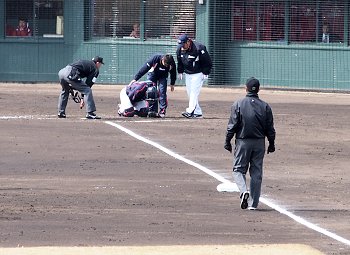 ボールが股間に当たりましたご様子で、結局、交代となりました。