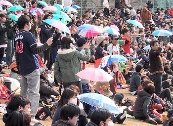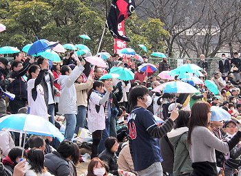 カラフルな(…と言いましても、水色系の傘が多かったのですけど)傘が目立ちます。相変わらず外野席側からホームベース方向に強い風が続いておりまして、逆風ですから仲々ホームランも出にくい状況でしたが、3回でしたか…ヤクルトの畠山選手が左翼外野席にホームランを1本。8回裏にはカープの田中広輔選手がGONsanの前あたりに打球を運びましたので、結局、この日の試合でのホームランは2本でありました。