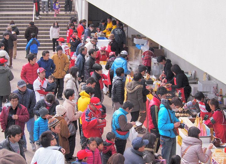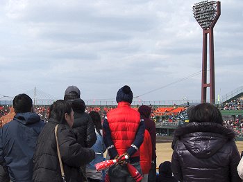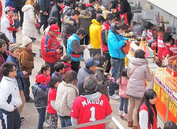 逆風を突いてよくホームランが出たものだ…と感心するのですけど、なんせ球場が狭いですから(^-^)スコアボード下の外野席入り口には売店が並び、温かいモノが飛ぶように売れておりました。