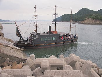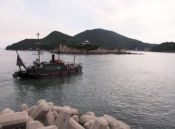 丁度、仙酔島へ渡ります「平成いろは丸」が出航でした。