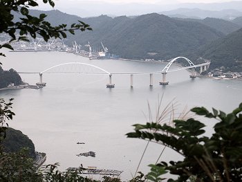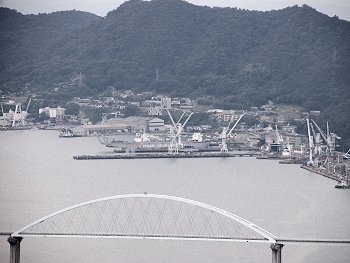 内海大橋…そして、その後方の常石造船。