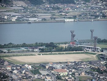 手前が福山市民球場、そして陸上競技場。