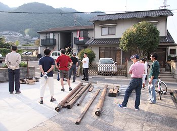 解体しました部材は軽トラックに積み込み、集会所の倉庫にと持ち帰り格納です。